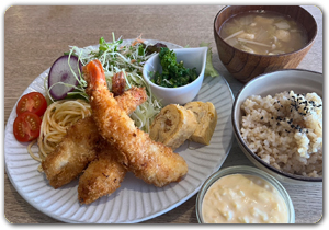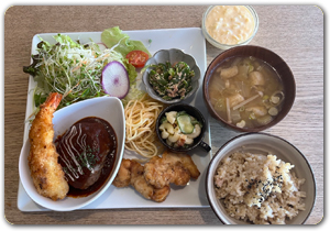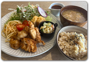 特別栽培の自家製米は、大麦・押し麦・コーン・ハト麦・発芽玄米・アワ・ヒエ・アマトランス・玄米・黒ゴマを使用した「雑穀ごはん」です。